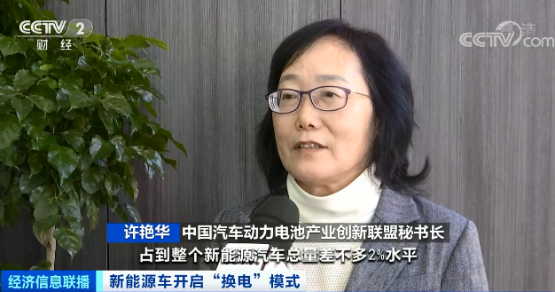 在北京亦庄一处办公园区内,私家车主常露秋正在为车辆更换电池。这座今年新建的换电站能让车辆自动泊车入位,3到4分钟完成换电。常露秋告诉记者,自己住的老小区没有充电车位,买车到现在4年基本一直在换电。