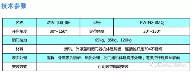 使防火门平时保持常开,火灾时又能关闭,以求发挥其“活动防火分隔”功能,真正达到“关的及时,开的方便”,请采用本产品系列包括有PW-FD-BMQ防火门闭门器。