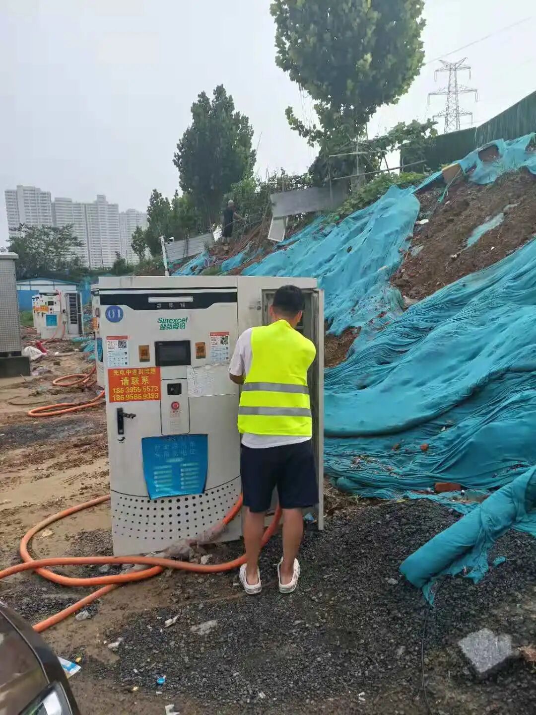 21日暴雨停歇后,盛弘股份立即组织了河南驻地的服务团队开展充电桩的巡检工作。由于暴雨的影响,路面积水严重,处处隐藏着深坑,一不小心就会开到泥泞之中,开车的同事需要打起120分的精神观察路况。受道路影响,一个晚上只能巡检到三四个场站,巡检进度缓慢。