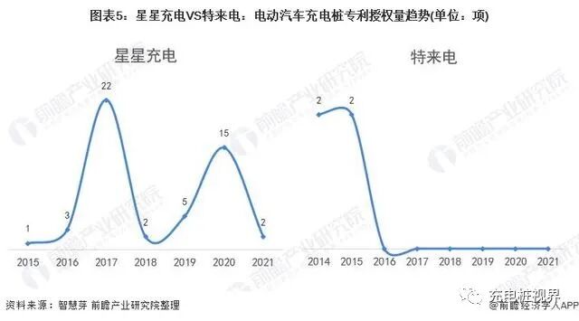 从电动汽车充电桩的相关zhuanli授权量来看,截至2021年9月19日,星星充电相关的zhuanli授权量已达50项,而特来电仅有4项,可见,星星充电在电动汽车充电桩技术实力方面更胜一筹。
