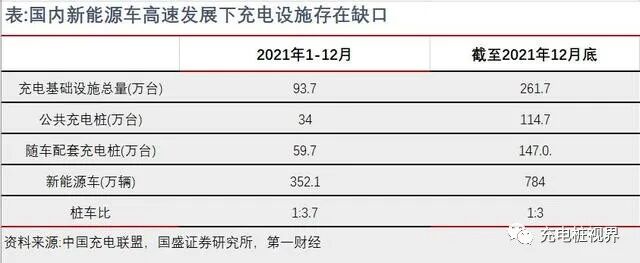 根据《电动汽车充电基础设施发展指南(2015-2020年)》的要求,至2020年,我国车桩比要达到接近1:1的合理水平。但事实上,2020年底,国内新能源汽车的“车桩比”为2.9:1(汽车保有量492万辆、充电桩数量为168.1万台)。截至2021年12月,车桩比为3:1,不降反升。