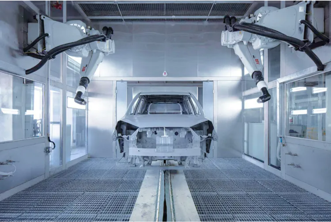 冲压成型的钣金件通过夹具固定其相对位置,在焊接车间使用电阻焊机进行焊接并组拼成完整的白车身。完成焊装的工艺后便通过输送系统送往涂装车间。