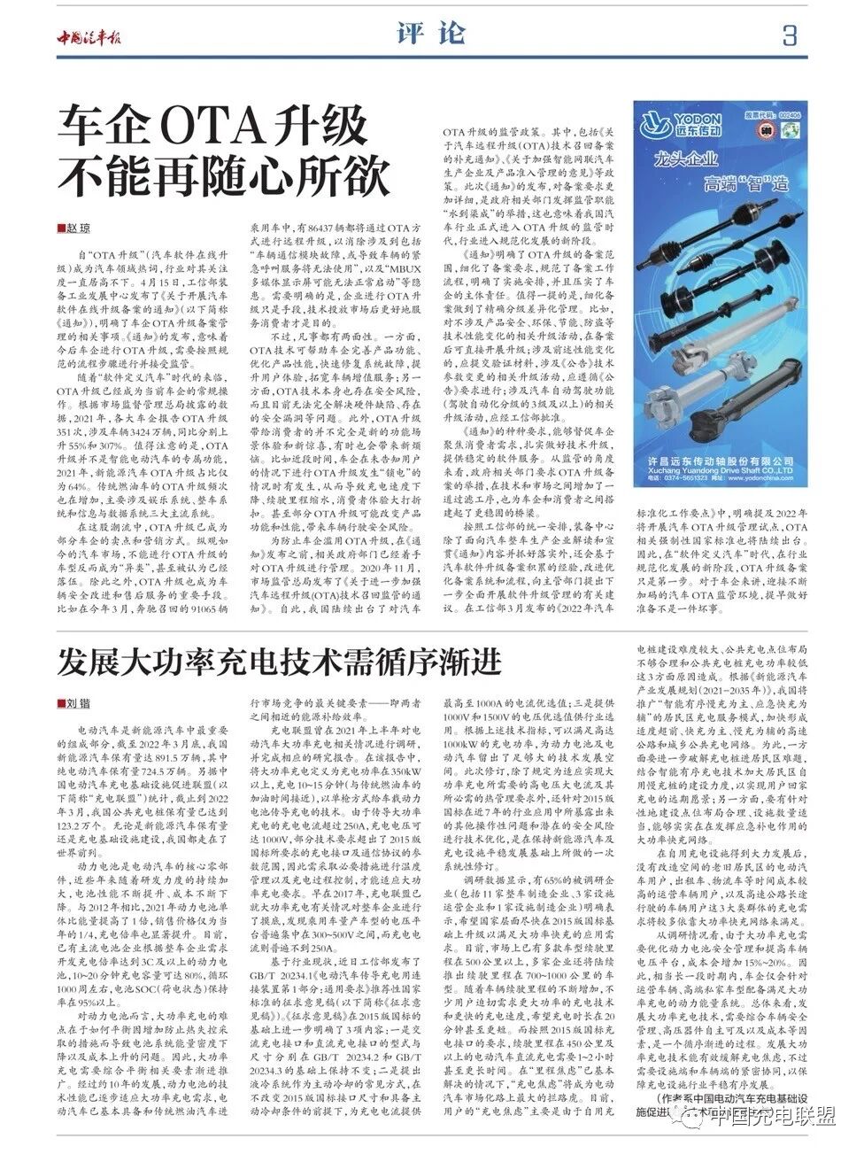 从调研情况看,由于大功率充电需要优化动力电池安全管理和提高车辆电压平台,成本会增加15%~20%。因此,相当长一段时期内,车企仅会针对运营车辆、高端私家车型配备满足大功率充电的动力能量系统。总体来看,发展大功率充电技术,需要综合车辆安全管理、高压器件自主可及以及成本等因素,是一个循序渐进的过程。发展大功率充电技术能有效缓解充电焦虑,不过需要设施端和车辆端的紧密协同,以保障充电设施行业平稳有序发展。