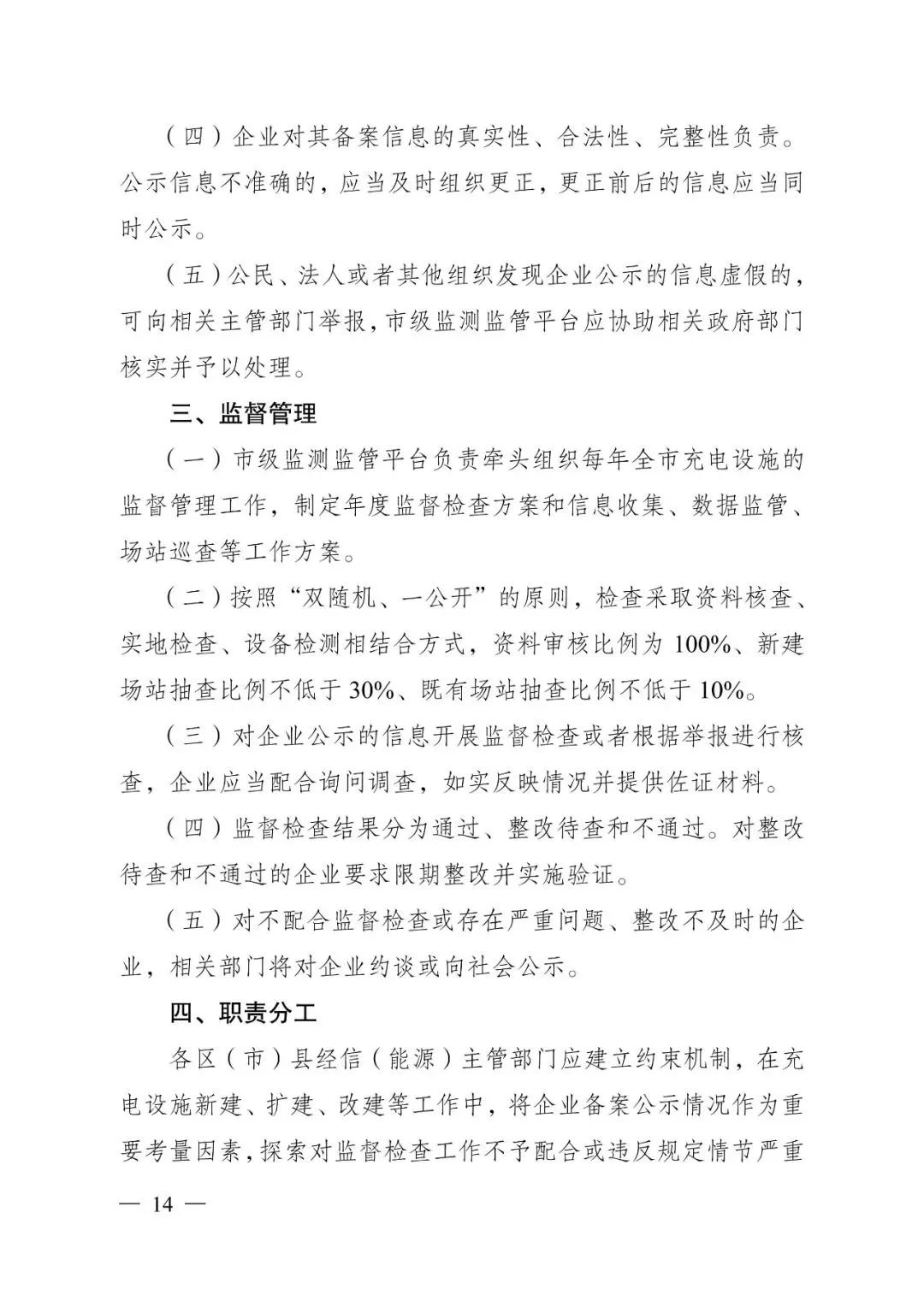 第二十三条 健全充换电设施安全监管体系,落实属地管理责任、行业监管责任、企业主体责任。常态化开展充换电设施安全监督检查,及时消除安全隐患。