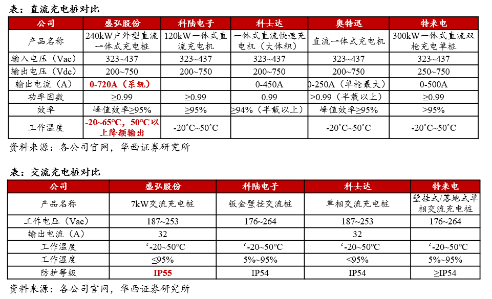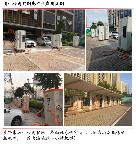 - 公司的充电桩领域产品在最大输出电流、工作温度、防护等级方面具有一定优势。而在各厂商其余产品性能类似的情形下,公司的定制化服务凸显优势。据公司官网案例介绍,公司为酒店量身定制低噪音版充电机,快速充电的同时维持酒店安静的居住环境。公司也为小桔定制开发出可智能调配充电功率的120kW群充充电机,使得功率资源得到充分使用。公司在充电桩产品同质化趋势背景下,提供研发设计、施工建造、运营维护的一站式服务方案,定制化充分满足了客户各类需求,不仅有望拓展客户群体,也有望增加已有定制化客户的黏性。