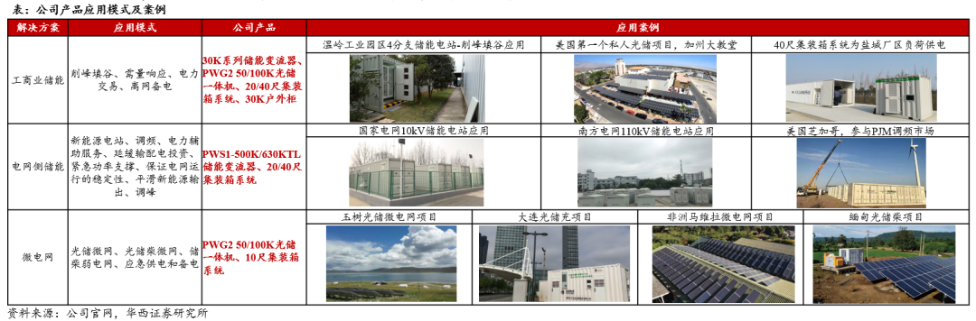 - 2012年,公司进军储能市场,以独特的模块化储能变流器产品占领市场先机,并参加了国家863项目、印尼海岛示范工程等国家级示范项目。目前,公司新能源电能变换设备产品主要包括储能变流器、储能系统电气集成、光储一体机等,主要解决储能电池和电网之间的双向电能变换及传输,并且广泛应用于分布式光伏系统、电力储能、微电网系统等,其主要客户类型包括系统集成商、工程服务商、能源管理软件提供商以及电池提供商等。