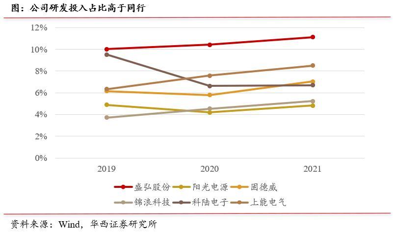 - 与储能PCS可比公司对比,公司研发投入占营收比重显著高于同行,公司储能技术及产品有望持续更新迭代。