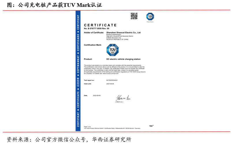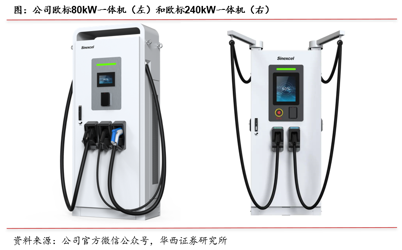 - 充电桩产品除了得到海外认证外,其中部分产品已导入海外市场。例如,公司的欧标80kW一体机目前已在欧盟国家、英国等海外地区销售。该产品支持最大80kW功率充电以及最大200A电流输出,不仅支持直交流同时充电,还可同时为三辆电动汽车充电。此外,公司的欧标240kW一体机产品升级智能算法控制功能,迭代高分辨率触摸屏和枪线管理装置,使得客户在高性能充电的同时,拥有更加安全便捷的充电体验。目前该类产品已经在欧盟国家销售,预计2023将继续拓展美国、韩国等海外国家。
